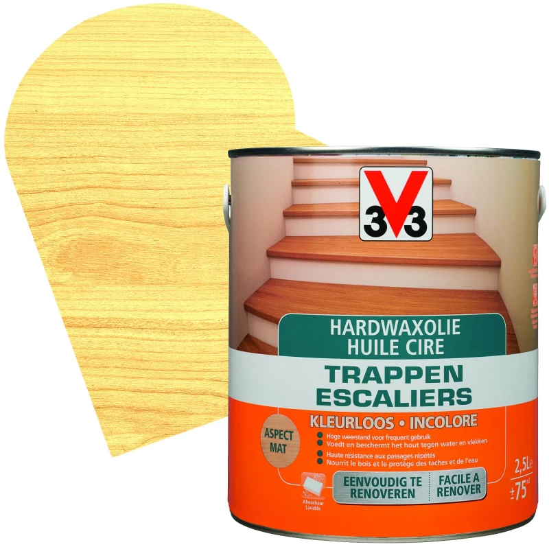 L’huile cire Escaliers de la marque V33 s’impose comme la solution incontournable pour protéger vos marches, vos rampes ou vos balustrades. Incolore avec une finition mate, ce produit est doté d’une formule à base d’huiles et de cires naturelles qui imprègne le bois en profondeur. Cet élément convient pour tous types de bois et assure une protection durable contre les taches et les griffes.