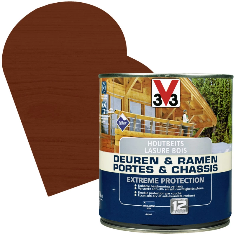 La lasure Extrême Protection la marque V33 s’applique sur les bois extérieurs neufs ou anciens et est compatible avec d’anciennes lasures à base de solvant ou d’eau, de toutes marques.