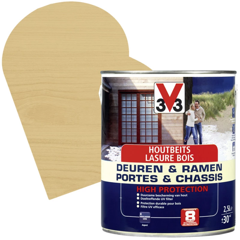 La lasure Haute Protection la marque V33 s’applique sur les bois extérieurs, neufs ou anciens, à l’exception de l’Iroko et des bois exotiques.