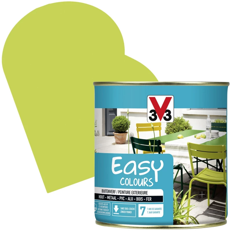 Si vous cherchez un élément polyvalent pour tout vos petits travaux, la peinture extérieure Easy Colours absinthe satiné de la marque V33 se présente comme la solution idéale. Ce produit est facile d’application et résiste parfaitement aux rayures, aux taches ou aux intempéries. Doté d’un haut pouvoir couvrant, cet élément a l’avantage d’adhérer à tous types de supports. Vous pouvez donc donner une seconde jeunesse à vos objets extérieurs, qu’ils soient en plastique, en métal ou en bois par exemple.