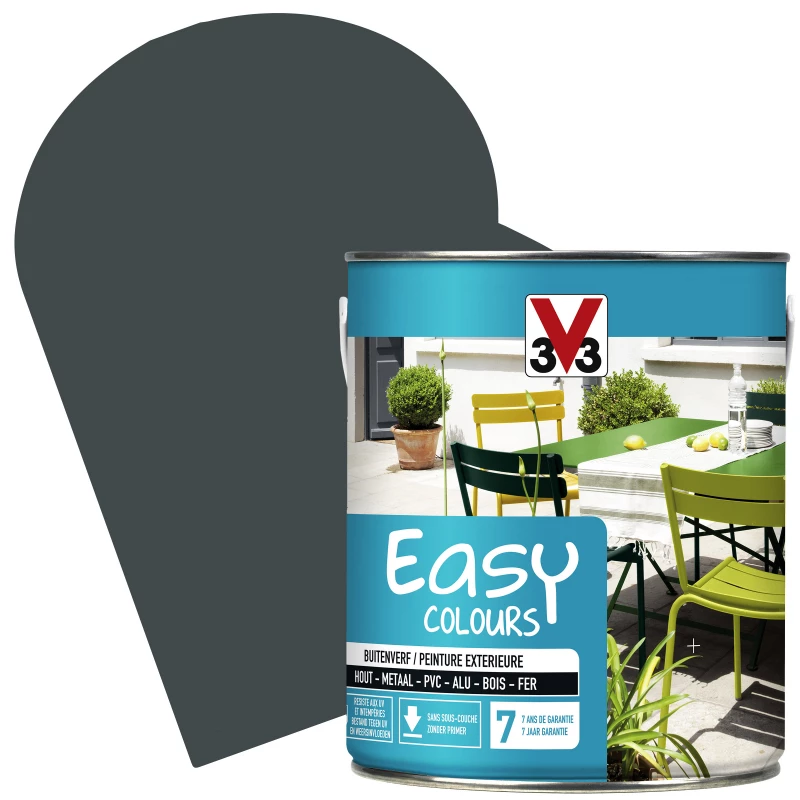La peinture extérieure Easy Colours de la marque V33 est destinée à la décoration ou à la restauration facile des châssis de fenêtres, des volets, des portails, des grilles, ainsi que du mobilier de jardin.