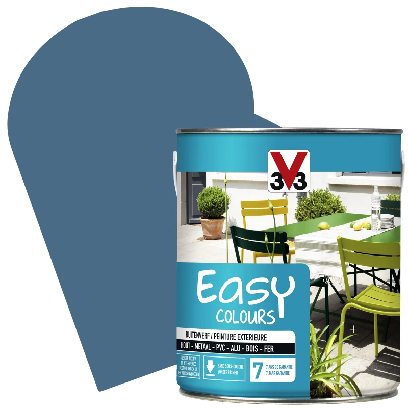 La peinture extérieure Easy Colours de la marque V33 est destinée à la décoration ou à la restauration facile des châssis de fenêtres, des volets, des portails, des grilles, ainsi que du mobilier de jardin.