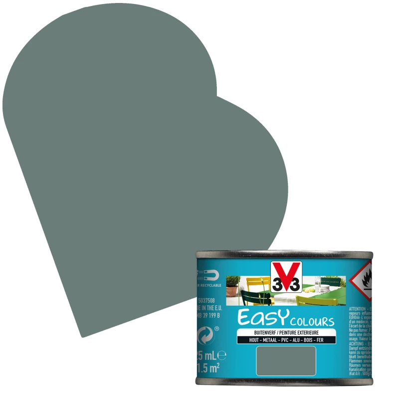 La peinture extérieure Easy Colours de la marque V33 est destinée à la décoration ou à la restauration facile des châssis de fenêtres, des volets, des portails, des grilles, ainsi que du mobilier de jardin.