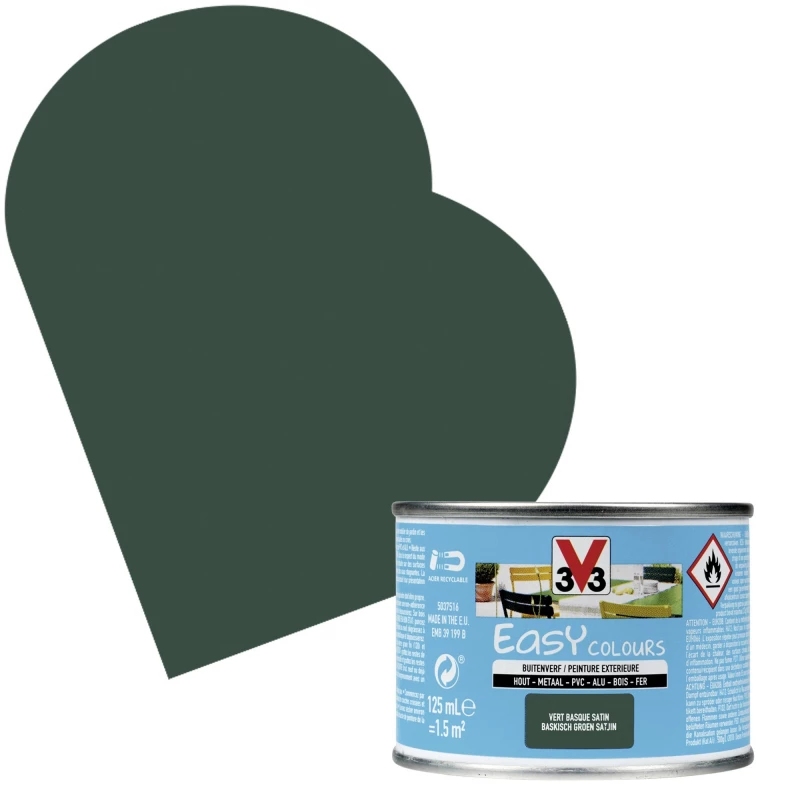 Si vous cherchez un élément polyvalent pour tout vos petits travaux, la peinture extérieure Easy Colours vert basque satiné de la marque V33 se présente comme la solution idéale. Ce produit est facile d’application et résiste parfaitement aux rayures, aux taches ou aux intempéries. Doté d’un haut pouvoir couvrant, cet élément a l’avantage d’adhérer à tous types de supports. Vous pouvez donc donner une seconde jeunesse à vos objets extérieurs, qu’ils soient en plastique, en métal ou en bois par exemple.