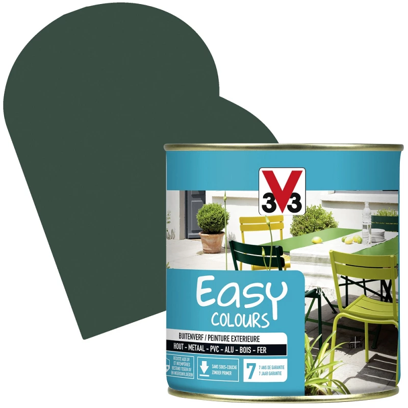 Si vous cherchez un élément polyvalent pour tout vos petits travaux, la peinture extérieure Easy Colours vert basque satiné de la marque V33 se présente comme la solution idéale. Ce produit est facile d’application et résiste parfaitement aux rayures, aux taches ou aux intempéries. Doté d’un haut pouvoir couvrant, cet élément a l’avantage d’adhérer à tous types de supports. Vous pouvez donc donner une seconde jeunesse à vos objets extérieurs, qu’ils soient en plastique, en métal ou en bois par exemple.