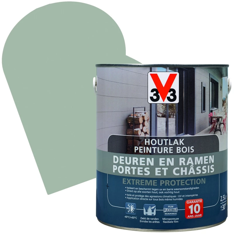 V33 Lasure Extreme Protection Pour Portes & Châssis En Bois Gris Galet Satinée 2,5 L
