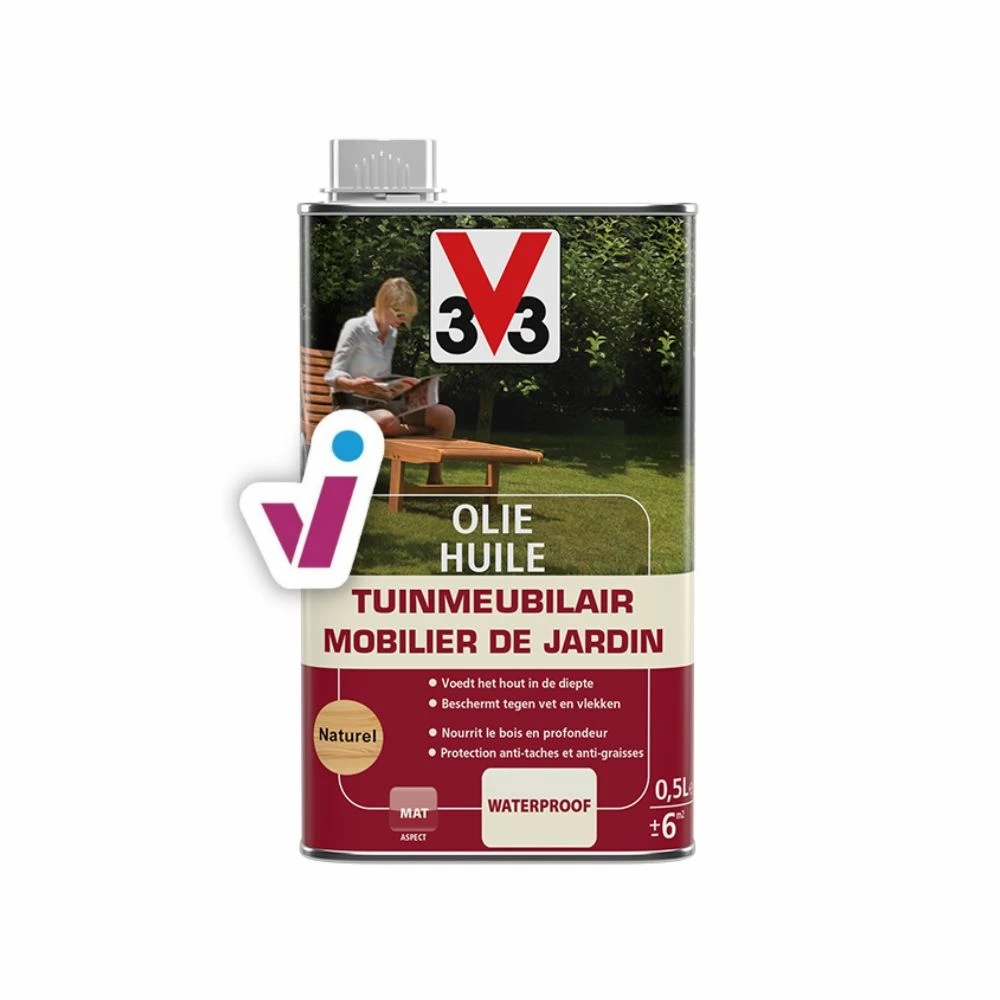 De V33 Tuinmeubilair Olie voedt het hout in de diepte en beschermt het tegen vet en vlekken. De olie is geschikt voor gebruik op tafels, stoelen, banken en ligstoelen. Ze voorkomt vergrijzing en het kraken van hout.